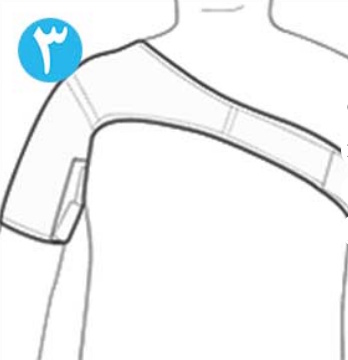 1- دست را داخل آستین شانه بند قرار دهید و آنرا از بازو تا شانه بالا بکشید و سپس برچسب ها را تا حدی که احساس راحتی میکنید محکم نمایید.